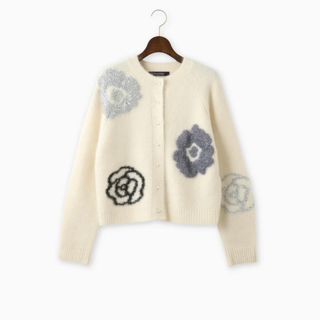 昨年、ご好評をいただいたお花モチーフジャガードニット。今回はお花モチーフの形を変えたり増やしたり色の雰囲気もアップデート。ここ数年、人気の出てきたアルパカ混素材にモチーフを表現するところは他にはない唯一無二なニットです。今季も是非お楽しみいただきたいです。