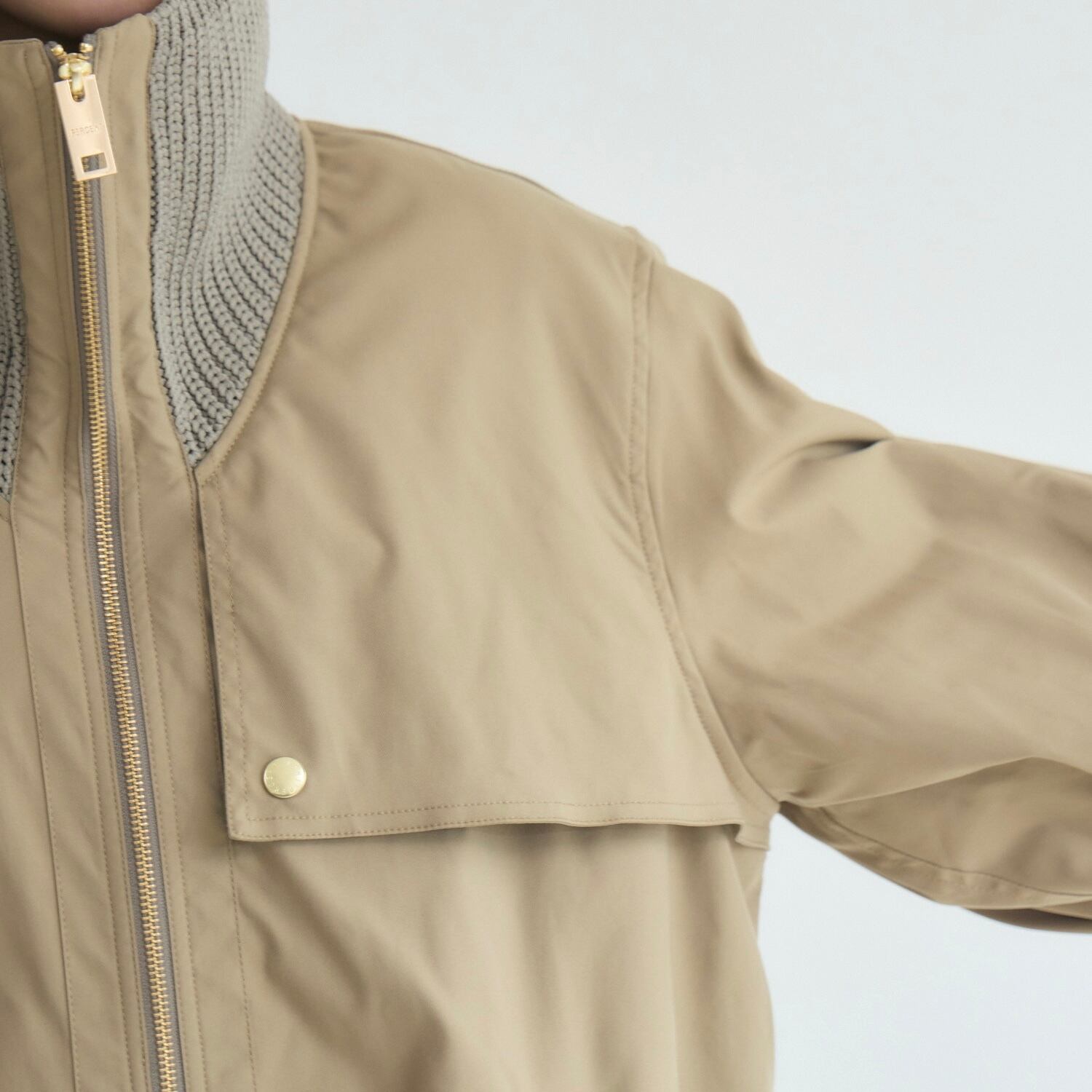 衿と袖口の太リブがポイントのナイロンコート