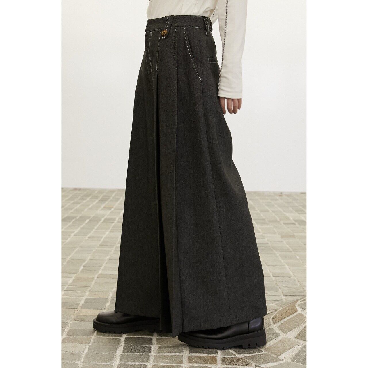 袴のような存在感を持ちながら、日常に取り入れやすいワイドパンツ。