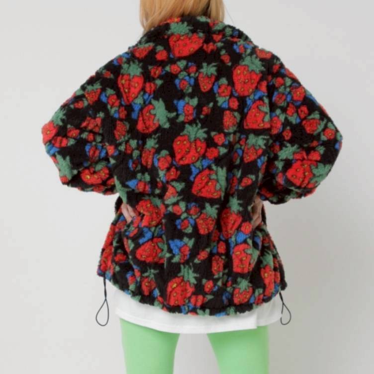 ルーズなサイズ感で軽くて使いやすいオリジナル柄のフリースボアジャケット。