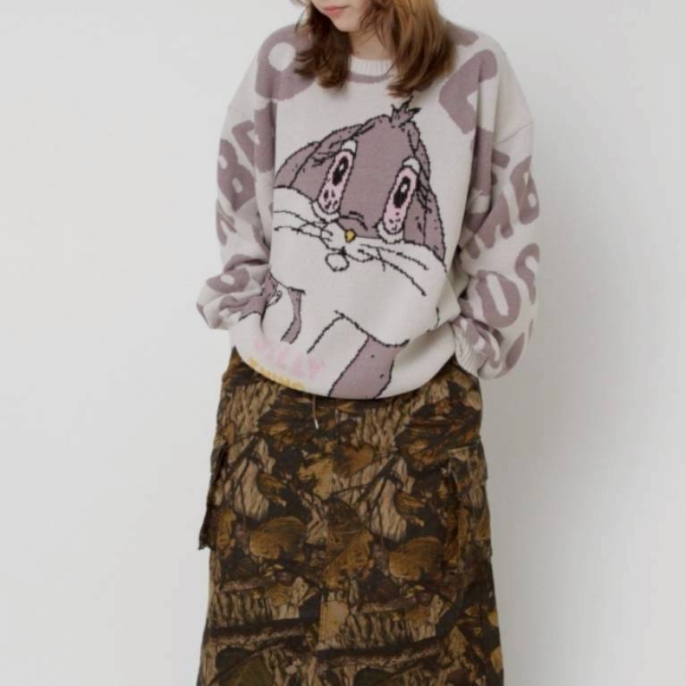 ボディ全体的に編み柄が配置された手の込んだインパクトのあるセーター