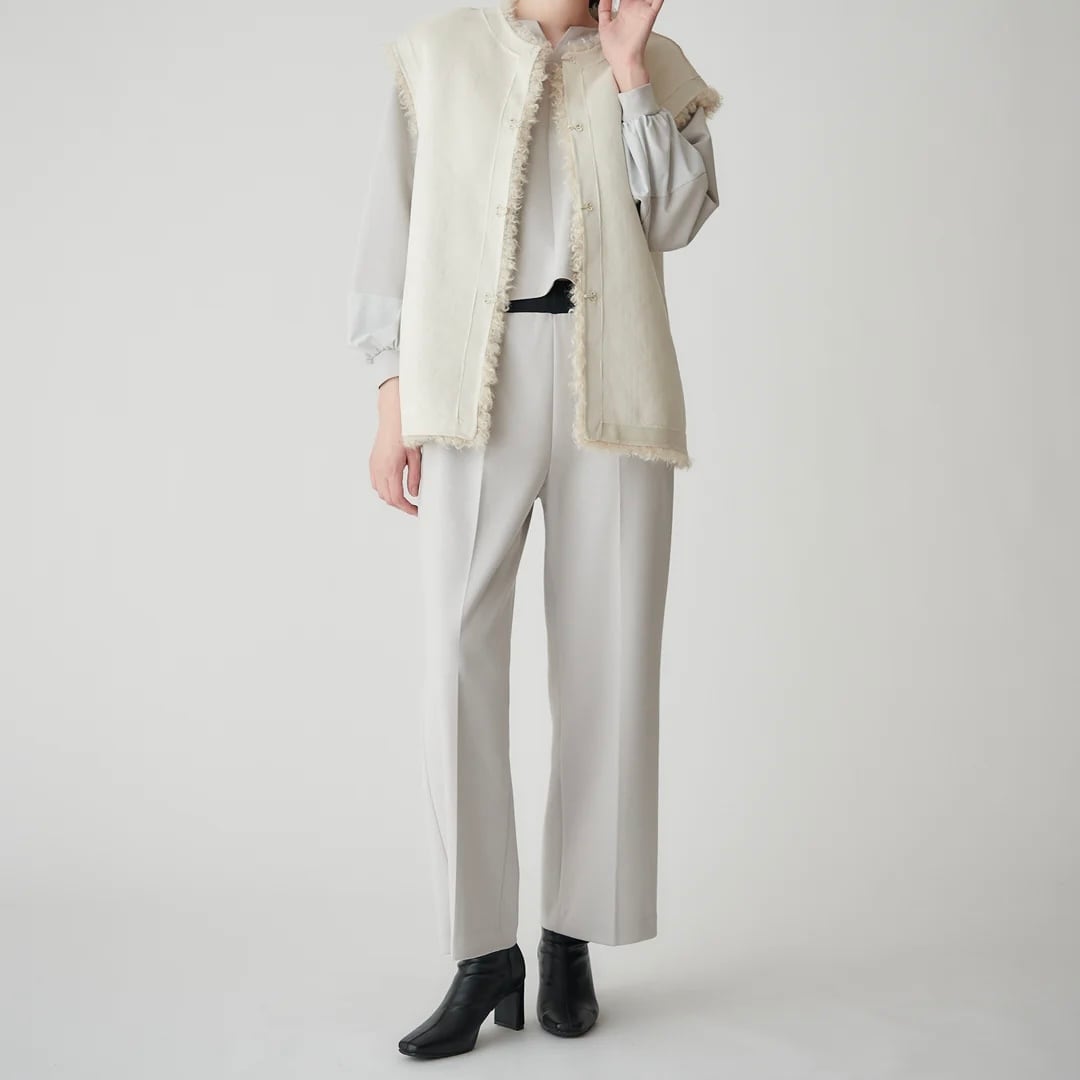 美脚効果を引き立てるストレートシルエットのパンツ。