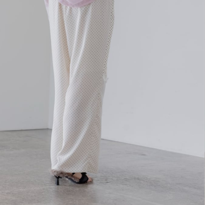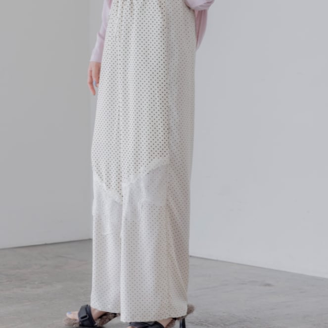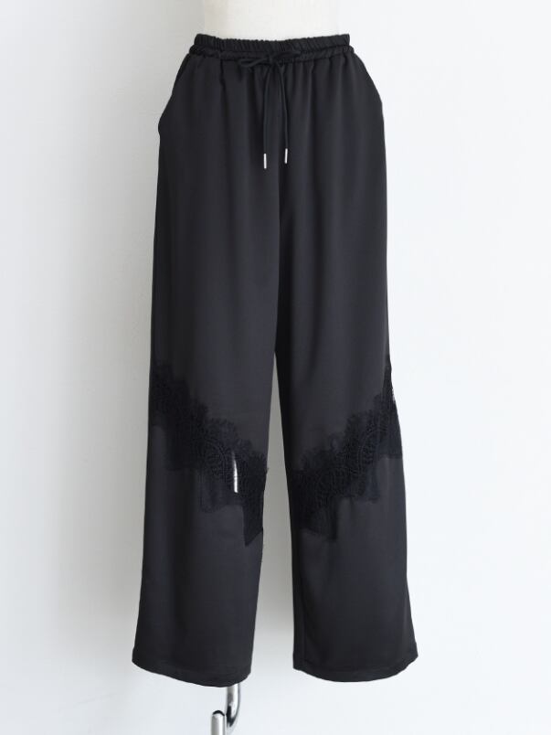 柔らかな素材感とリラックスしたシルエットが、どんなスタイルにもマッチします。エレガントなレースラインが、普段使いからちょっとしたお出かけまで幅広く活躍します。 ウエストはゴム仕様で、ストレスフリーな着心地。サイドポケットも付いており、実用性も兼ね備えています。動くたびに軽やかに揺れるレースが、女性らしさを引き立てる一着です