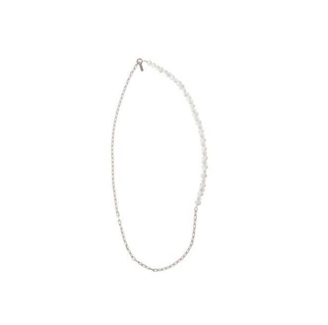 個性的なデザインのPearlinked chain necklaceは、洗練された印象を与えます。カジュアルなスタイルにも、フォーマルな装いにもぴったりのアイテムです。シンプルながら存在感のあるネックレスで、どんなシーンでも活躍します!さらに、アジャスター付きなので、お好きな長さで調整可能です。