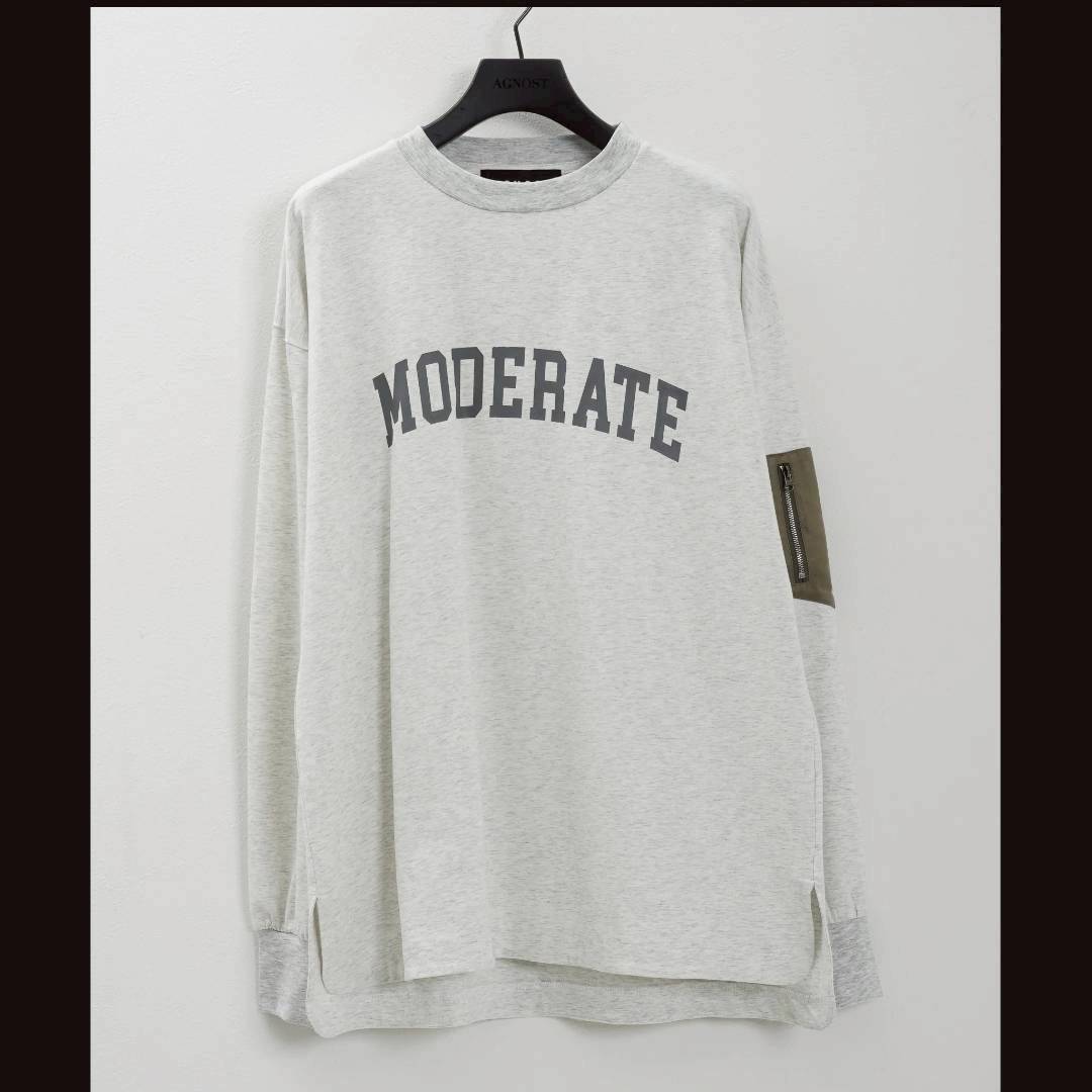 ロゴの意味は英語で『穏やかな』でモードにもカジュアルにも馴染む洗練のロンT