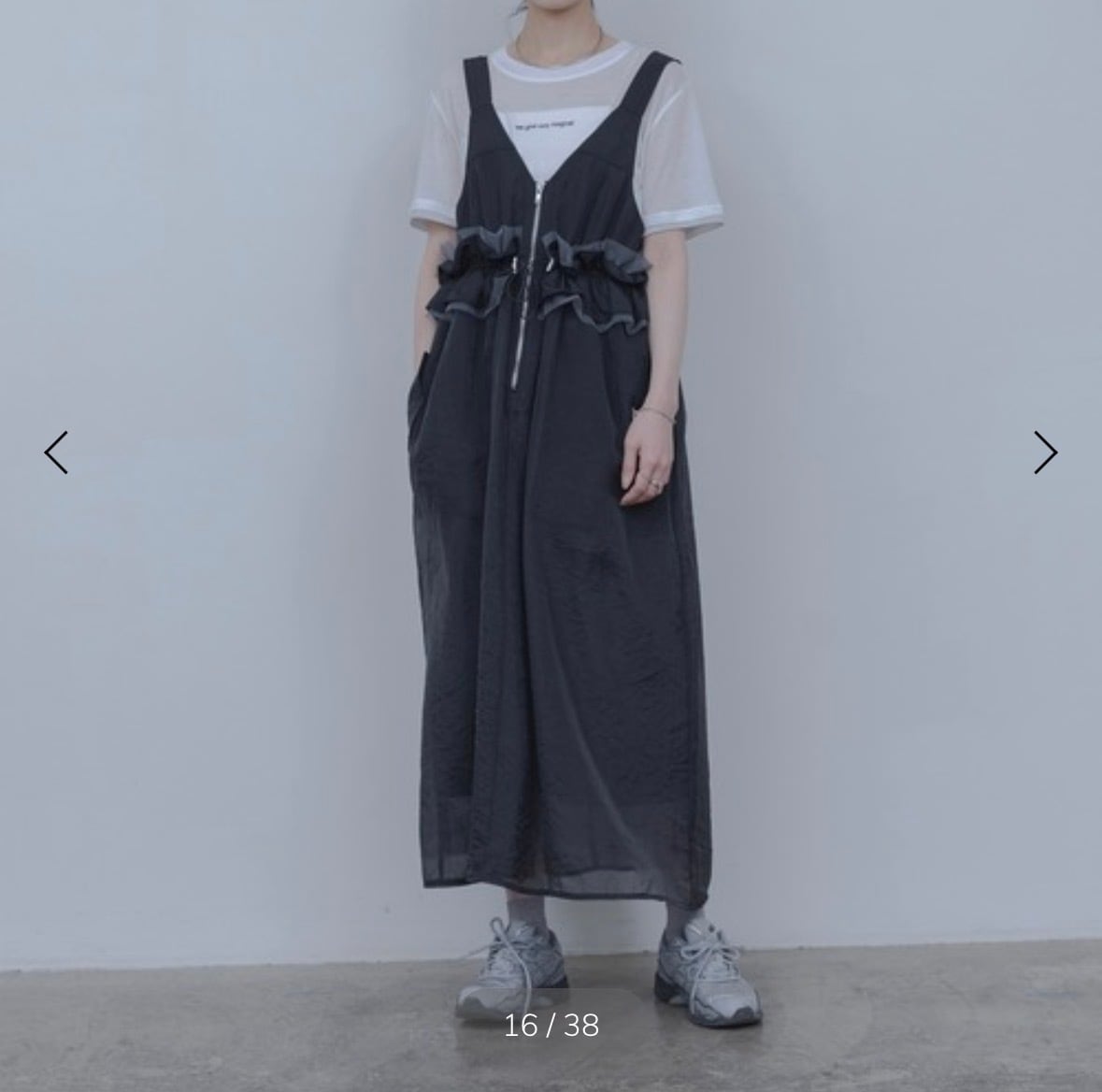 ウエストにあしらったフリルが目を惹くジャンパースカート。