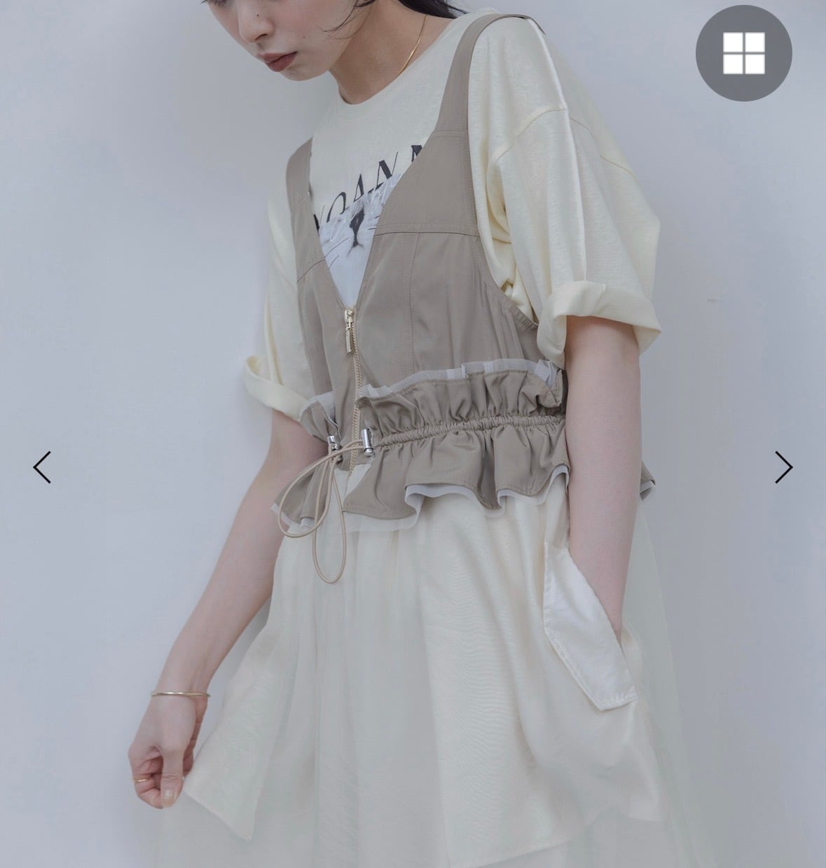 スカート部分はオーガンジーとチュールで軽やかな印象に。