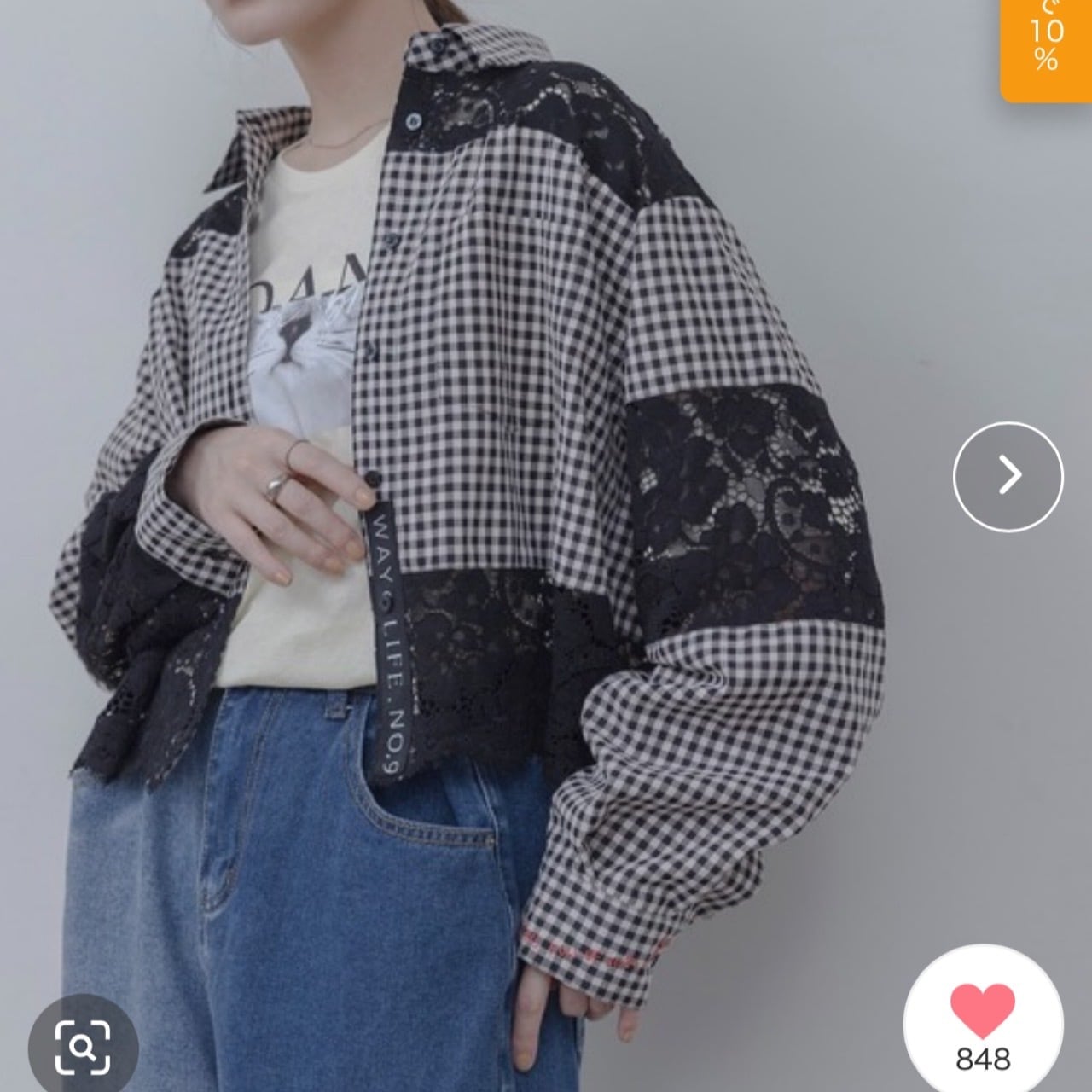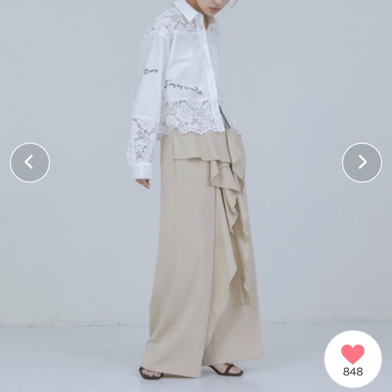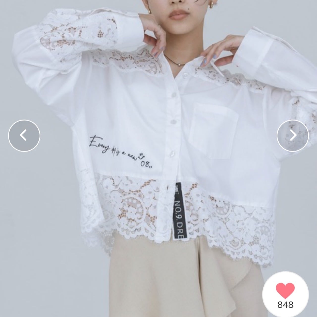 レース切り替えのシャツにランダム刺繍がほどこされた表情豊かなデザインシャツ。