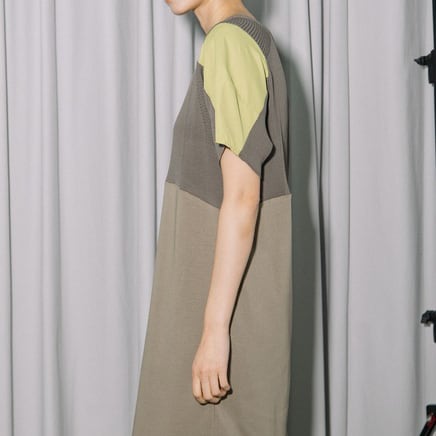 3素材の異素材をコンビネーションしたデザインワンピース。