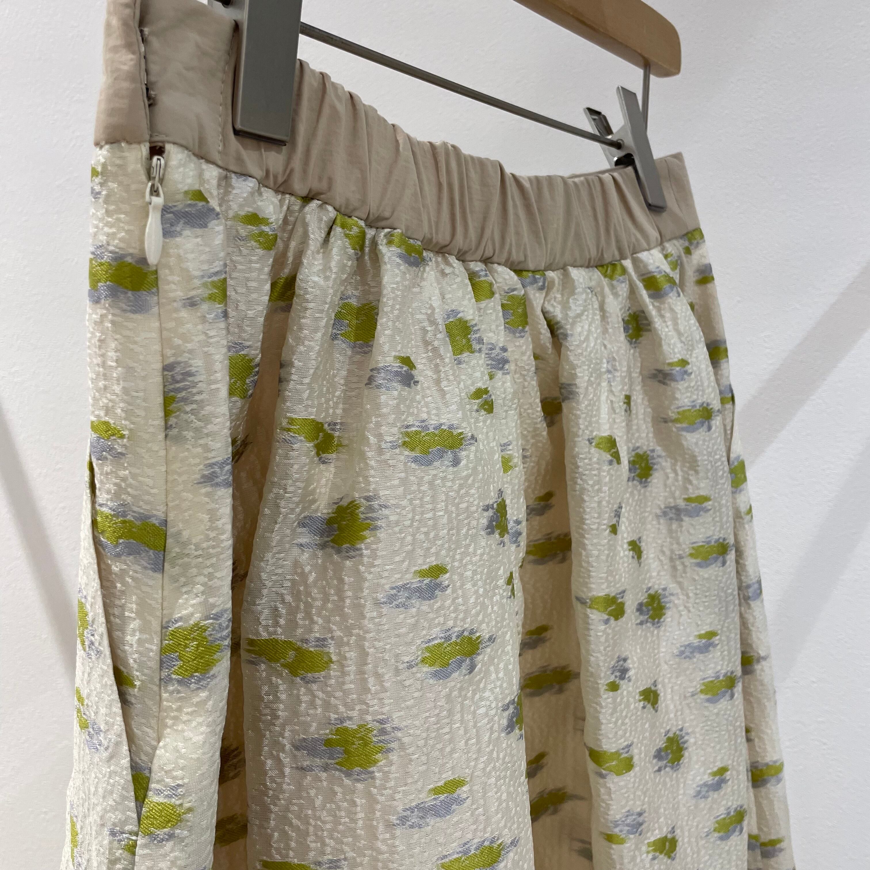 表情のあるジャガード素材に、小さなフラワー柄を散りばめたロングスカート。